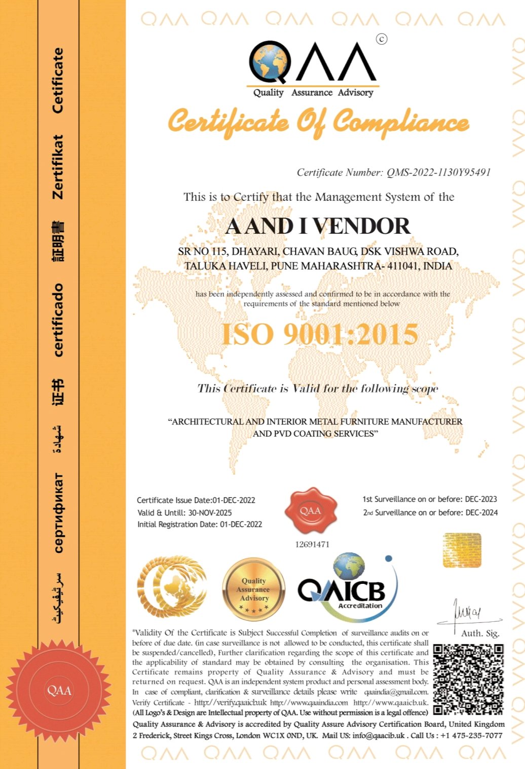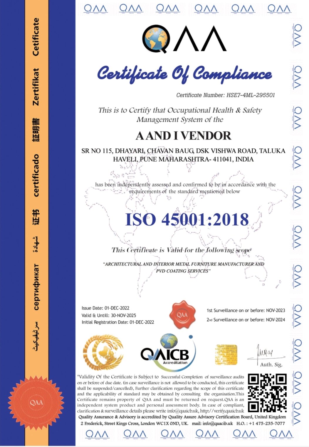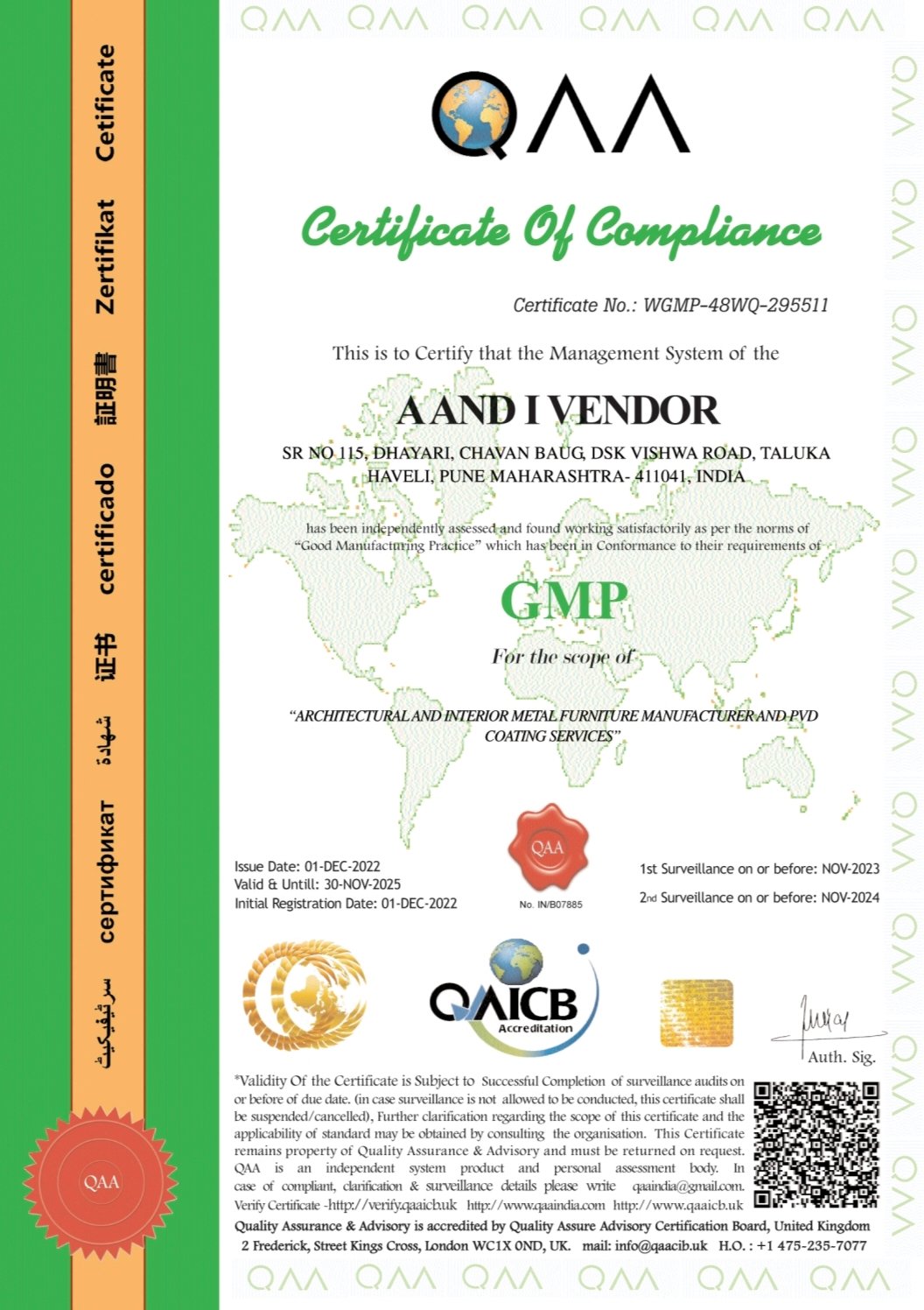 Today, A&I Vendor is manufacturer and supplier of customized metal furniture products with pvd coating services for top Architects, Interior Designers & state wise Showroom Dealers in India.